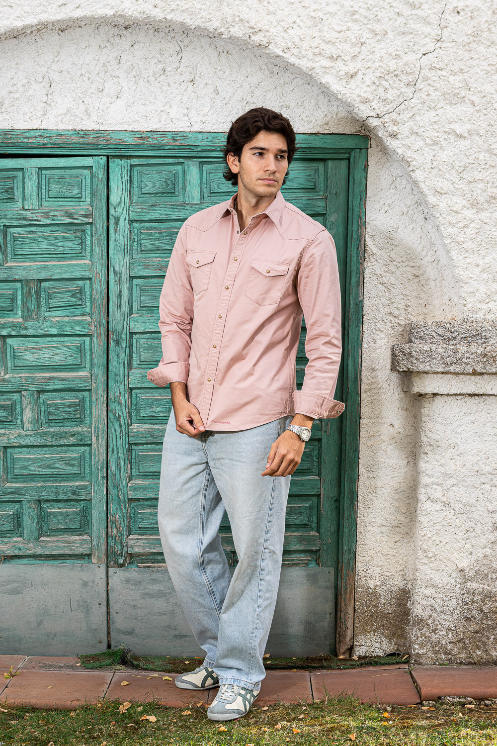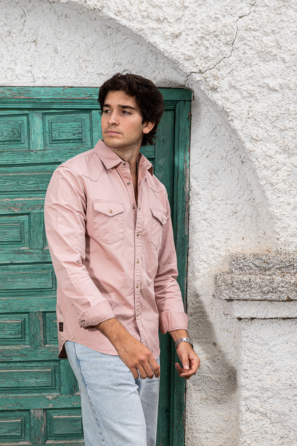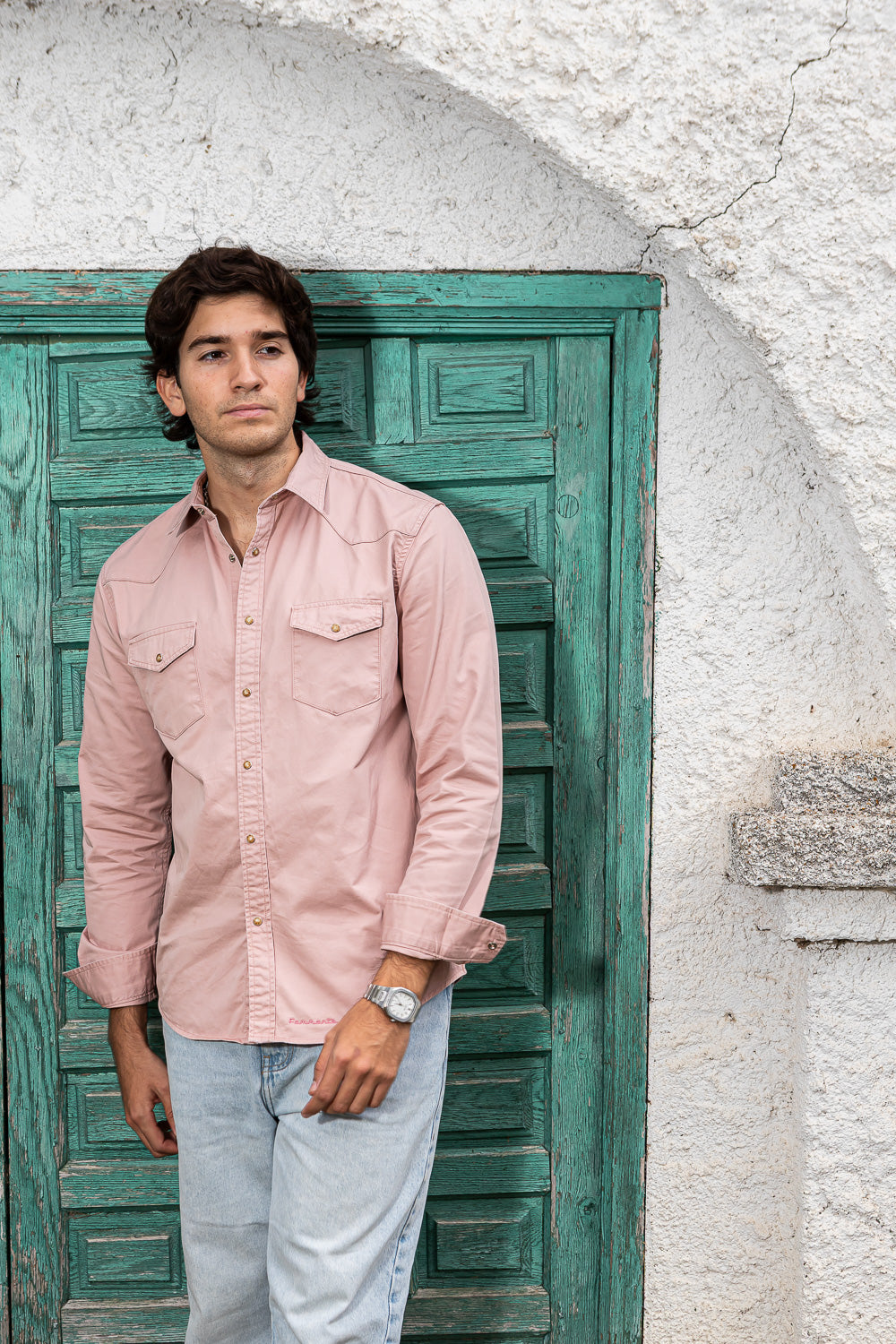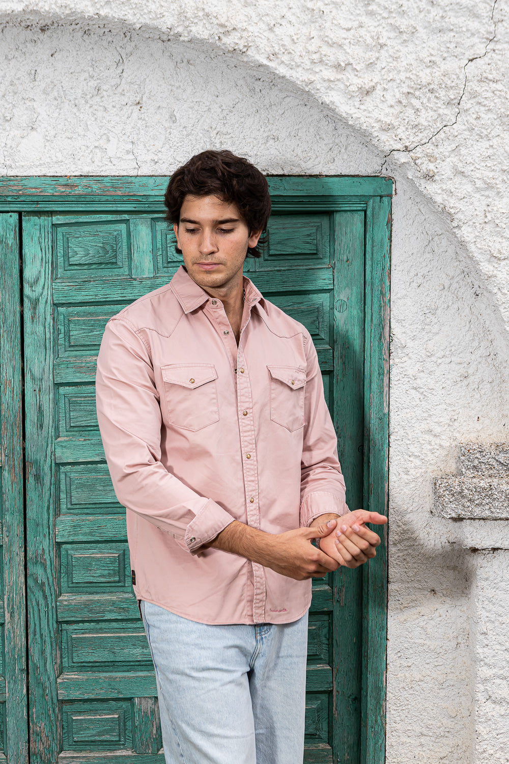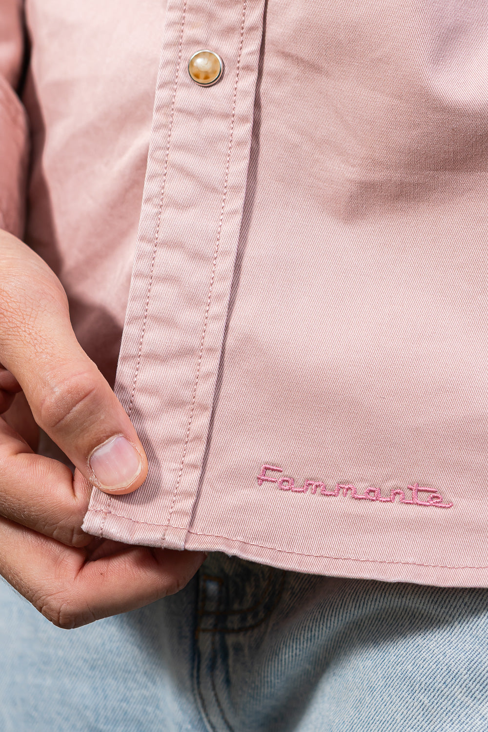 Camisa de tejana color coral.